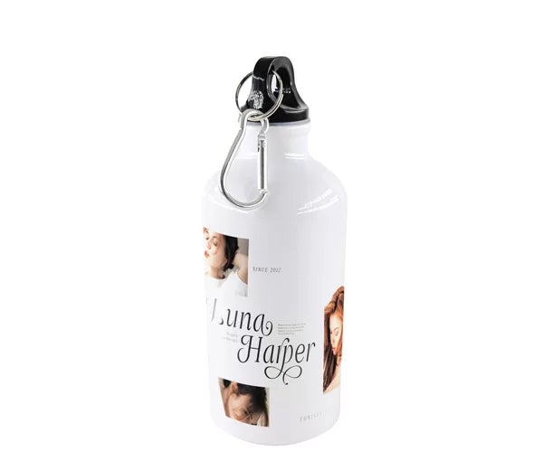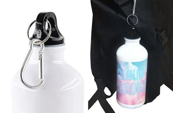 容量は使いやすい500ml。付属のカラビナでバッグやベルトに取り付けられるため、アクティブに動く場面でも安心。名入れやロゴ、イラストなど、オリジナルデザインを施した自分だけのボトルを、スマホから簡単に作成できます。