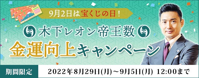フジテレビ系列で放送中の占い番組『突然ですが占ってもいいですか?』で人気を博している木下レオン。ただいま、月額公式サイト『木下レオン◆帝王数』にて、『木下レオン帝王数 金運向上キャンペーン』を公開中です。宝くじの日である9月2日に合わせ、金運や財産について鑑定できる項目を中心とした総合鑑定を新しくリリース致します。また、サイト内でご好評いただいている金運占いメニューの一部無料お試し部分を増量するなど、金運にまつわるお得な企画もご用意しております。ぜひこの機会にお試しください。