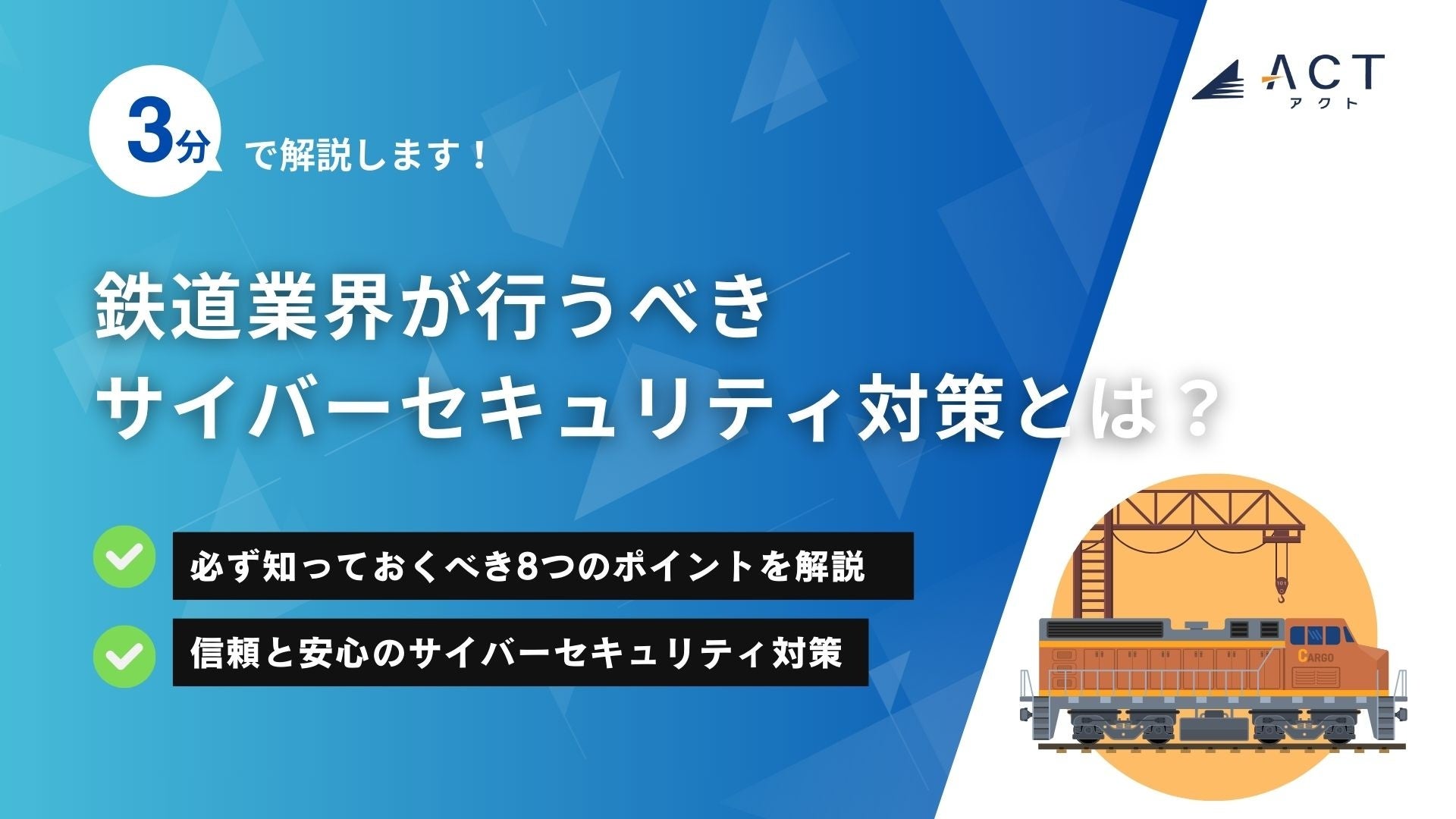 今年30周年を迎え、サイバーセキュリティ事業などを行う株式会社アクト(本社:東京都文京区、代表取締役CEO 小林 智彦 、以下 アクト)は【3分で解説!鉄道業界が行うべきサイバーセキュリティ対策とは?】のホワイトペーパーを公開しました。