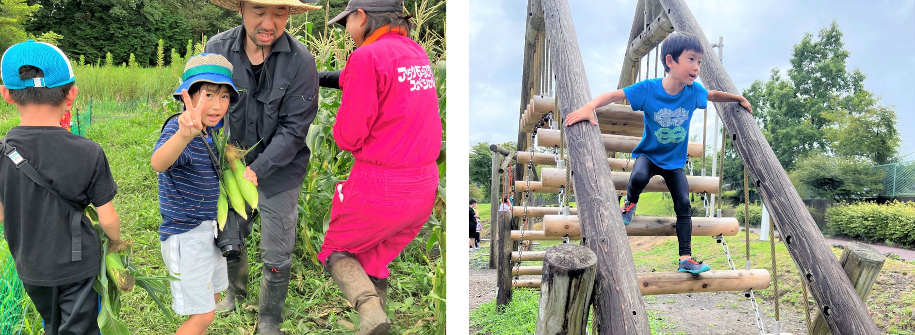 野菜収穫、水遊び、アスレチック、スイカ割りなど多岐にわたる体験も充実しており、夏休みの定番体験をたくさん経験できます。