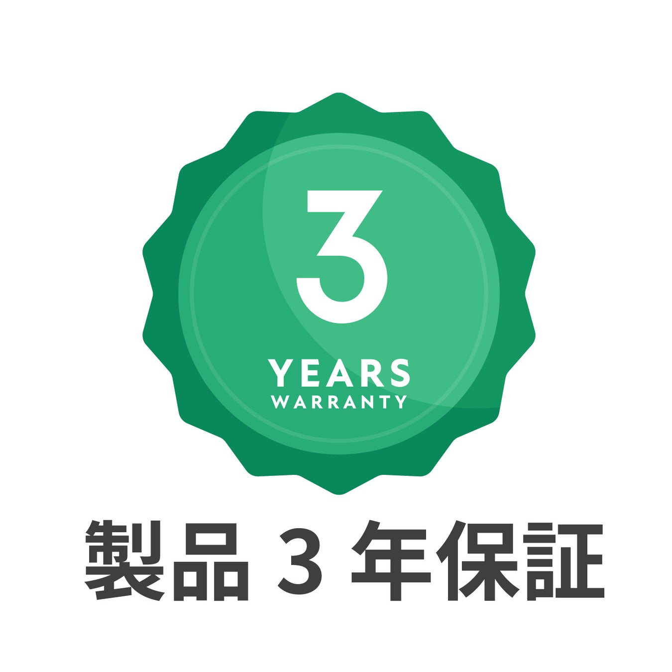 本製品は3年保証がございます。ご使用中に万が一不具合などが発生した場合、保証期間内であれば無償で交換を保証いたします。お客様が安心して長くお使いいただける製品品質と併せて、サポート体制にも力を入れております。