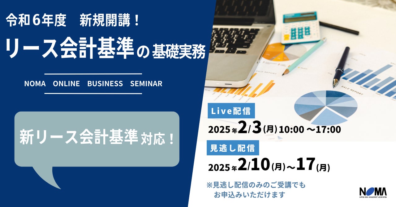 一般社団法人日本経営協会(本部事務局:東京都渋谷区、会長:高原 豪久)は、経営実務講座「新リース会計基準対応!リース会計基準の基礎実務」を新規開催いたします。