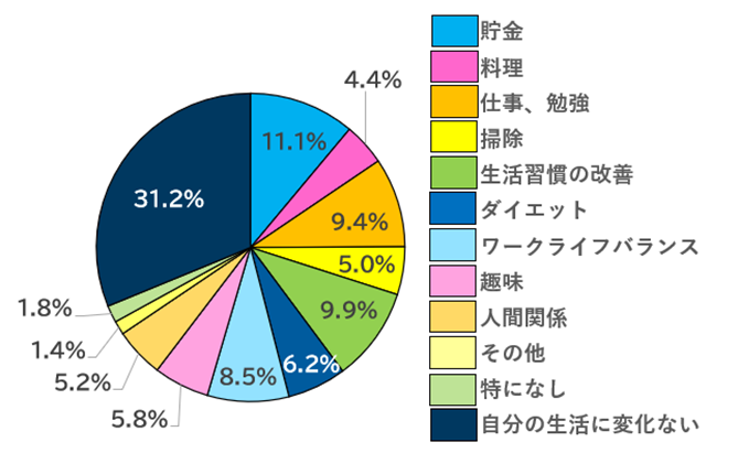 - 新生活で意識をしていきたいことで一番多いのは「貯金」