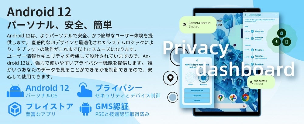 強力な64ビット4コア・プロセッサーを搭載し、優れたパフォーマンスと低消費電力を実現しています。AIアルゴリズムは、ユーザーの習慣に基づいてパフォーマンスをインテリジェントに最適化し、よりスムーズな体験を提供します。acデュアルバンドWi-Fiと、ネットワーク速度が最大433Mbpsの高速5G周波数帯に対応しています。効果的なBT 4.2により、周辺機器と忠実に接続することができます。
