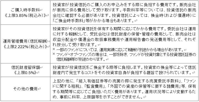 以下の費用の合計額については、投資家の皆様がファンドを保有される期間等に応じて異なりますので、 表示することができません。
