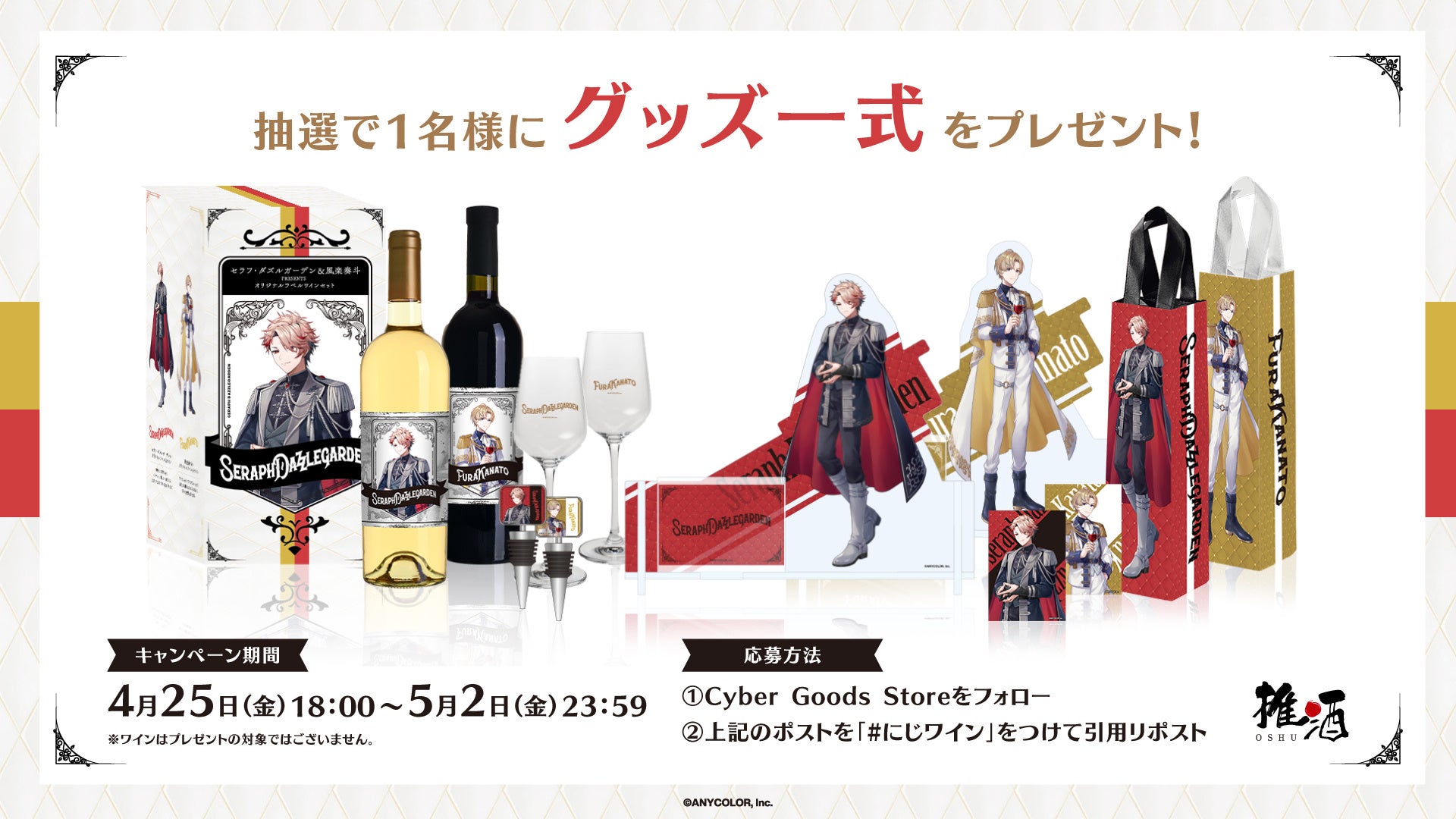 株式会社サイバーエージェント(本社:東京都渋谷区、代表取締役:藤田晋、東証プライム市場:証券コード4751)は、にじさんじ所属のセラフ・ダズルガーデン&風楽奏斗のオリジナルラベルワインセットと、アクリルワインスタンドやステッカーセットなどを含むその他関連グッズの発売を決定いたしました。