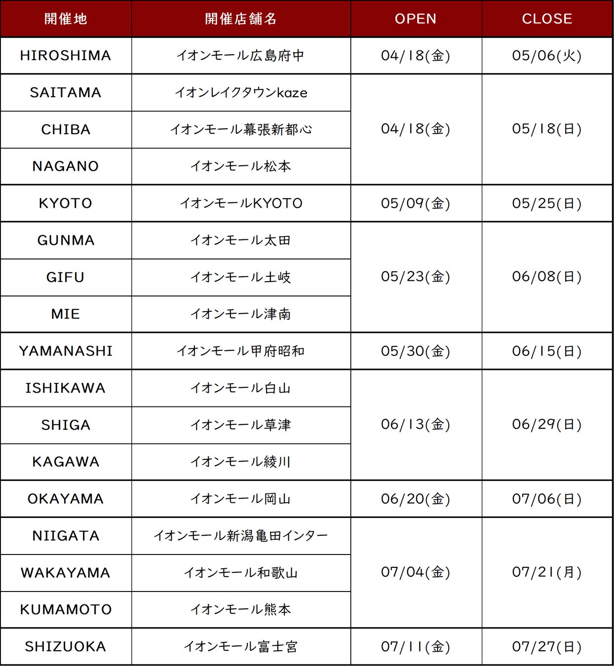 2025年4月18日(金)~7月下旬