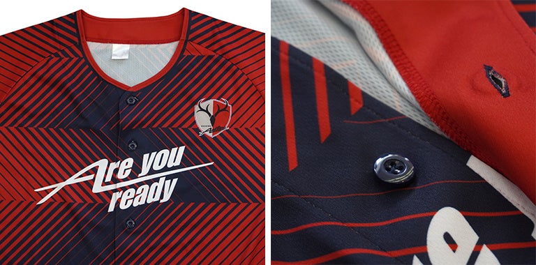 新しいシャツは、ボタンを採用することで気軽に着脱できる仕様としました。アントラーズレッドをベースに、同じくクラブカラーであるネイビーをアクセントとしています。