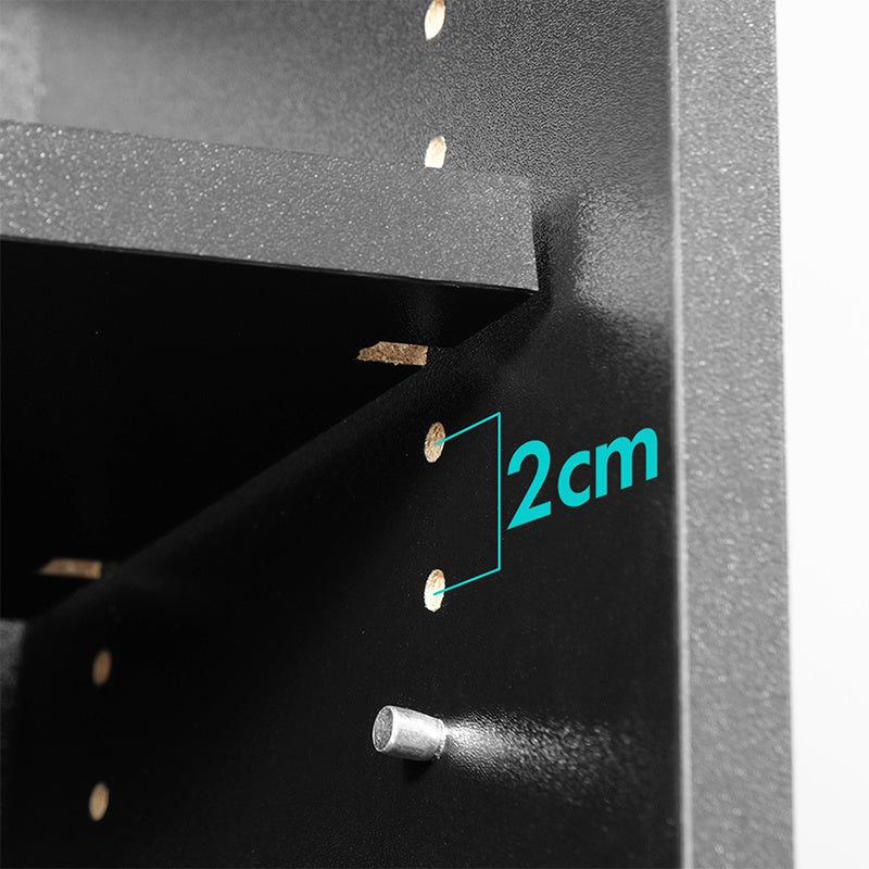 2cmピッチで自由に高さを設定可能。収納するアイテムの高さに合わせて調節できる。