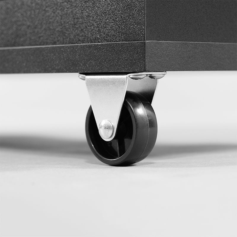 前後の直進移動に特化した、固定式キャスター。重たいペットボトルもスムーズに引き出せる。
