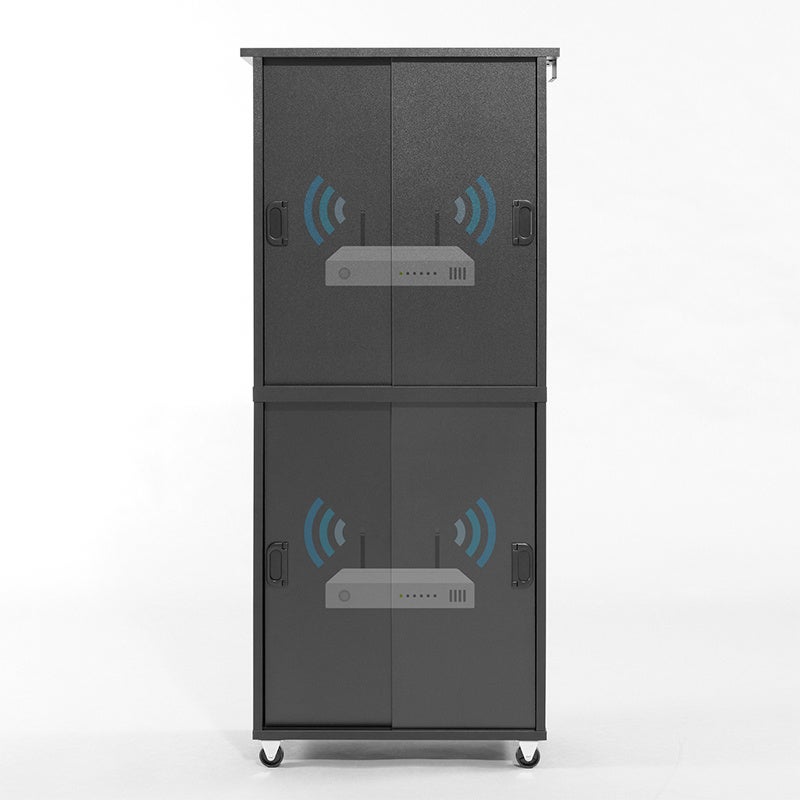 シンプルなブラックデザインはゲーム部屋との相性も抜群です。デスクと壁の間のデッドスペースに設置すれば、ゲーム部屋の隙間収納としても活躍します。コミック本やゲームソフト、散らかりがちな日用品を隠して収納し、部屋の統一感を保つことができます。電波を遮りにくい木製素材のため、Wi-Fiルーター機器などの収納にも対応します。