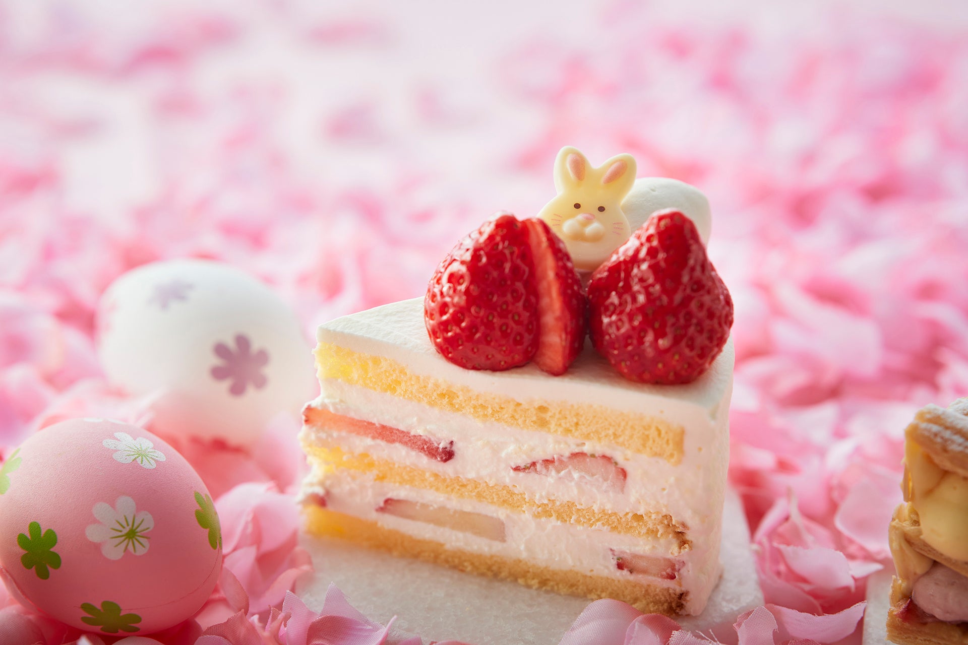 ふわふわスポンジに瑞々しい国産苺と軽やかな生クリームをサンドした、パティシエおすすめのケーキです。真っ赤な苺の間から、イースターバニーがひょっこり。