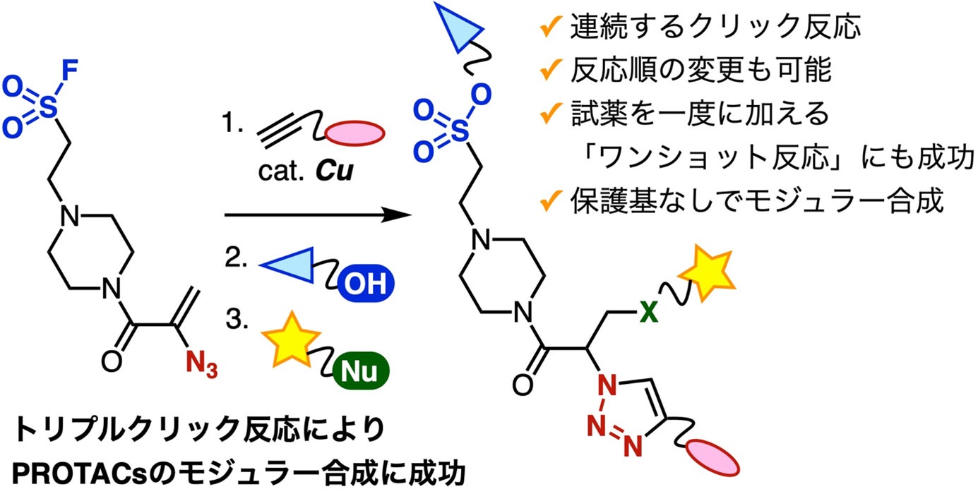 連続クリック反応でPROTACの効率的合成に成功 ~3種類の機能性分子の迅速な集積を実証、創薬研究の加速に期待~