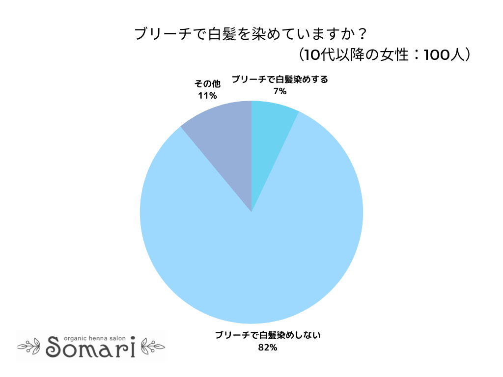 「ブリーチで白髪を染めていますか?」とアンケート調査した結果、「ブリーチで白髪染めする」と答えたのは7%でした。