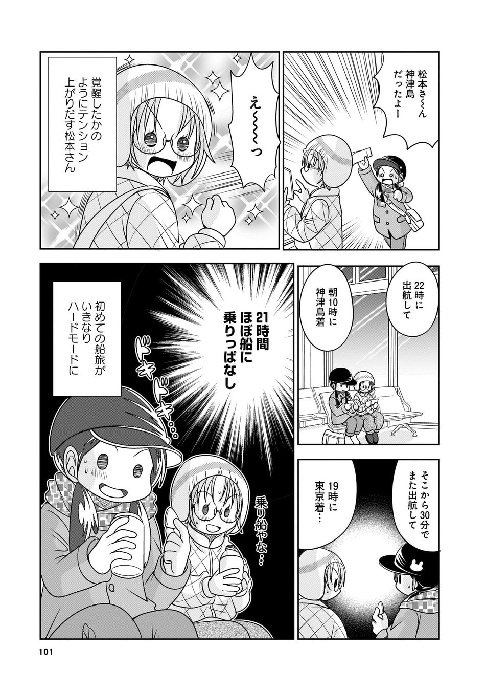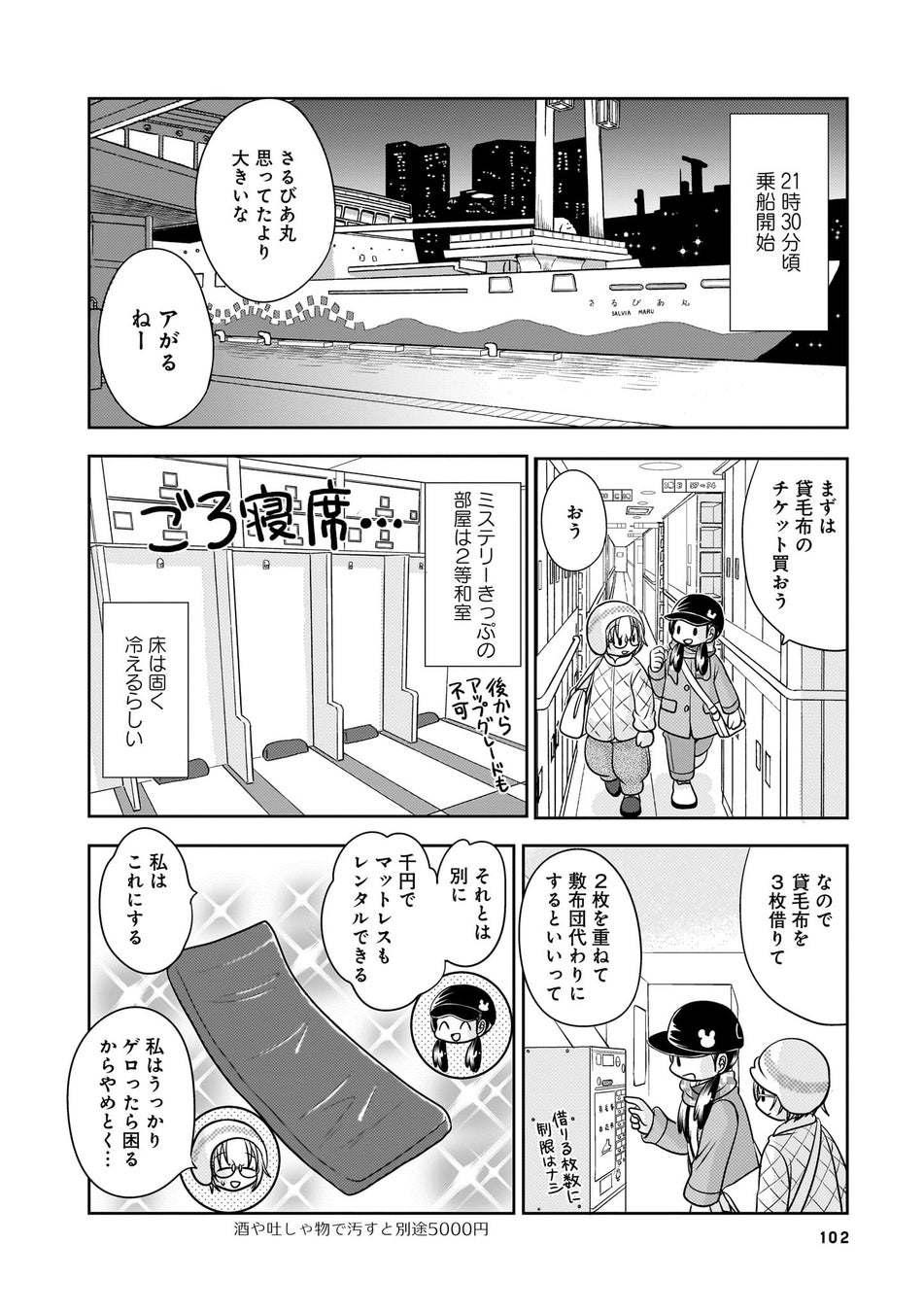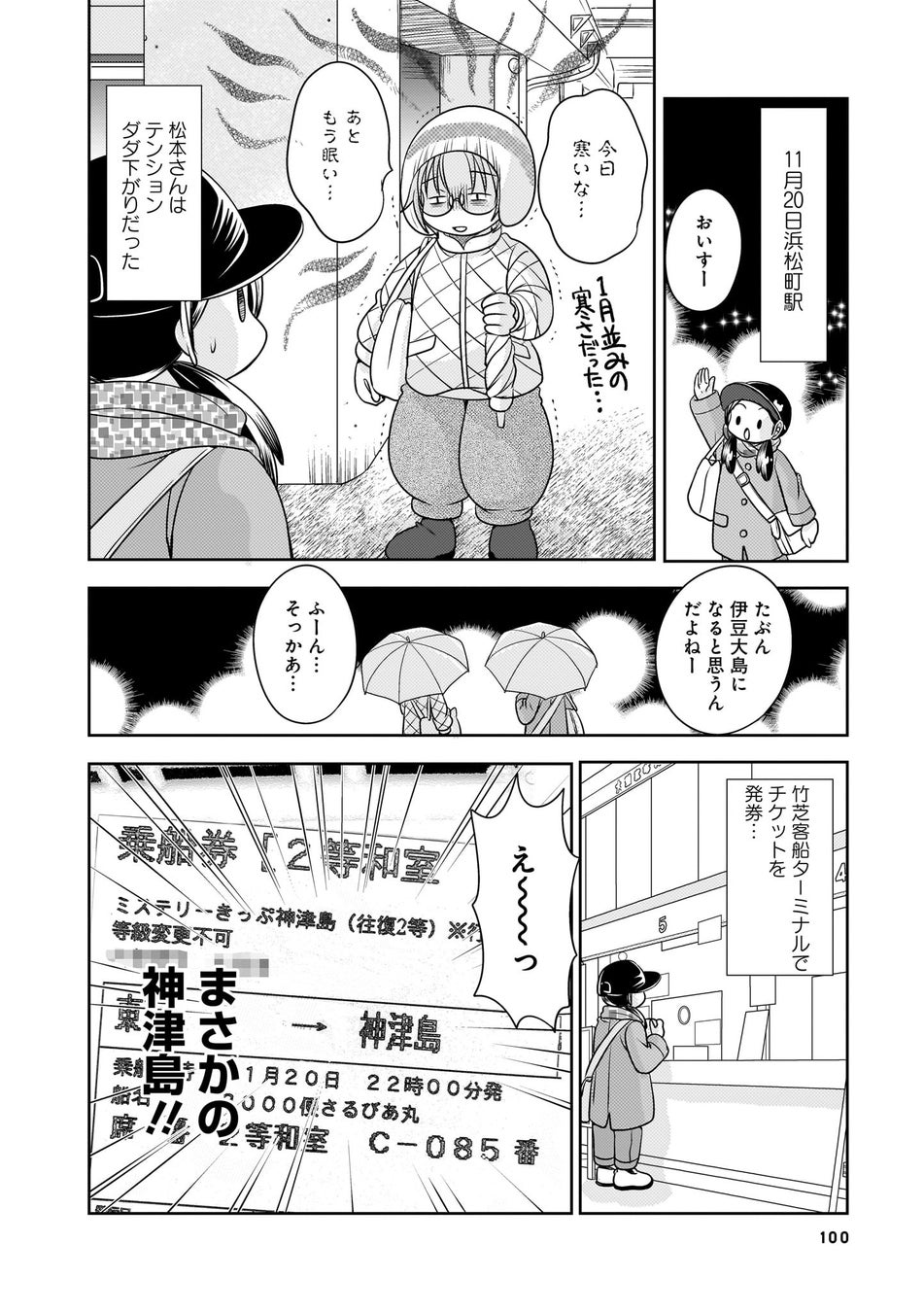 著者の個人誌で発表された本編に描き下ろしを加え、新作「ミステリーきっぷで〇〇島」編も収録。