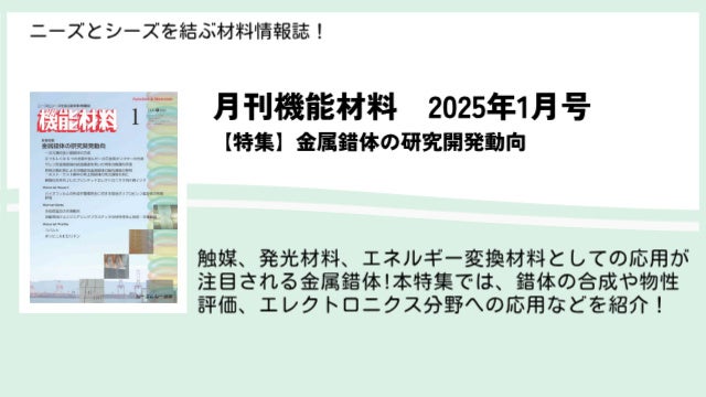様々な機能性を発現することから期待される金属錯体の合成や評価、応用技術を詳解!月刊機能材料2025年1月号が発売!