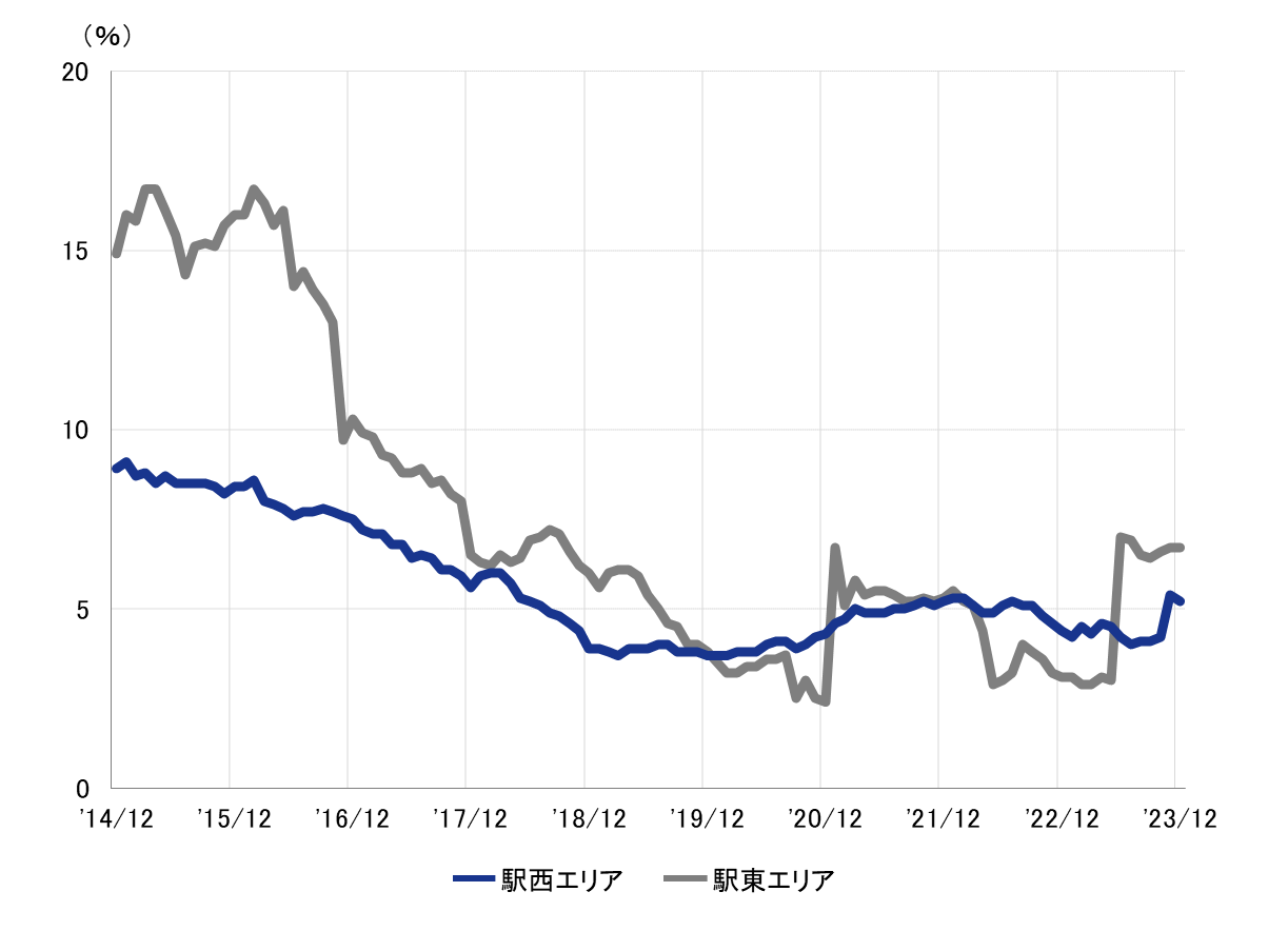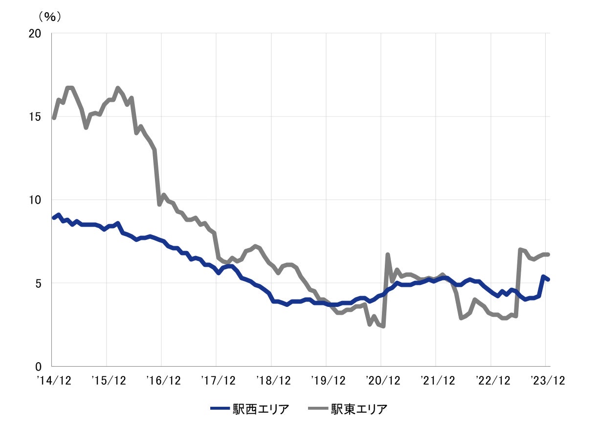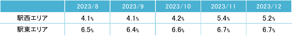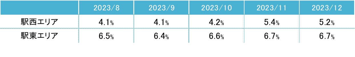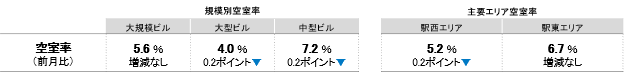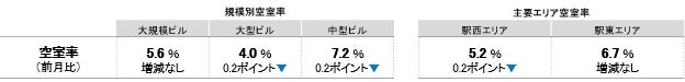全規模ビル 主要エリア 空室率:「駅西」2ヵ月連続で5%台を記録