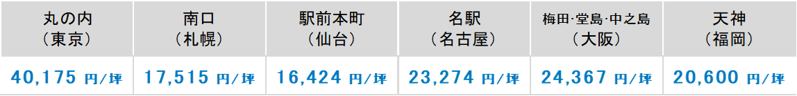 その他の全国6大都市の大規模ビル(東京・札幌・仙台・名古屋・大阪・福岡)のマーケットデータをまとめた各都市のプレスリリースは、下記リンク先よりダウンロードいただけます。