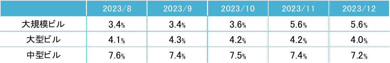 ※大規模ビル:1フロア面積200坪以上、大型ビル:同100坪以上200坪未満、中型ビル:同50坪以上100坪未満