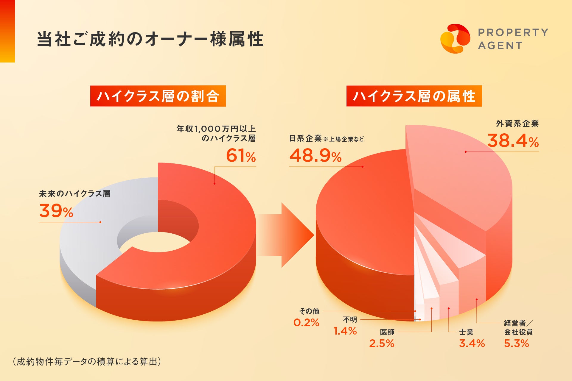 ハイクラス層は仕事を優先する傾向があり、将来を見据えた資産形成を後回しにしがちです。一方で、不動産投資をはじめとする資産運用に関して高い知識を有する方が多いのも特徴です。手間をかけずに堅実な資産形成を実現できる不動産投資は、まさにハイクラス層に最適な選択肢であり、PAでご成約いただいた多くの方に選ばれている理由です。