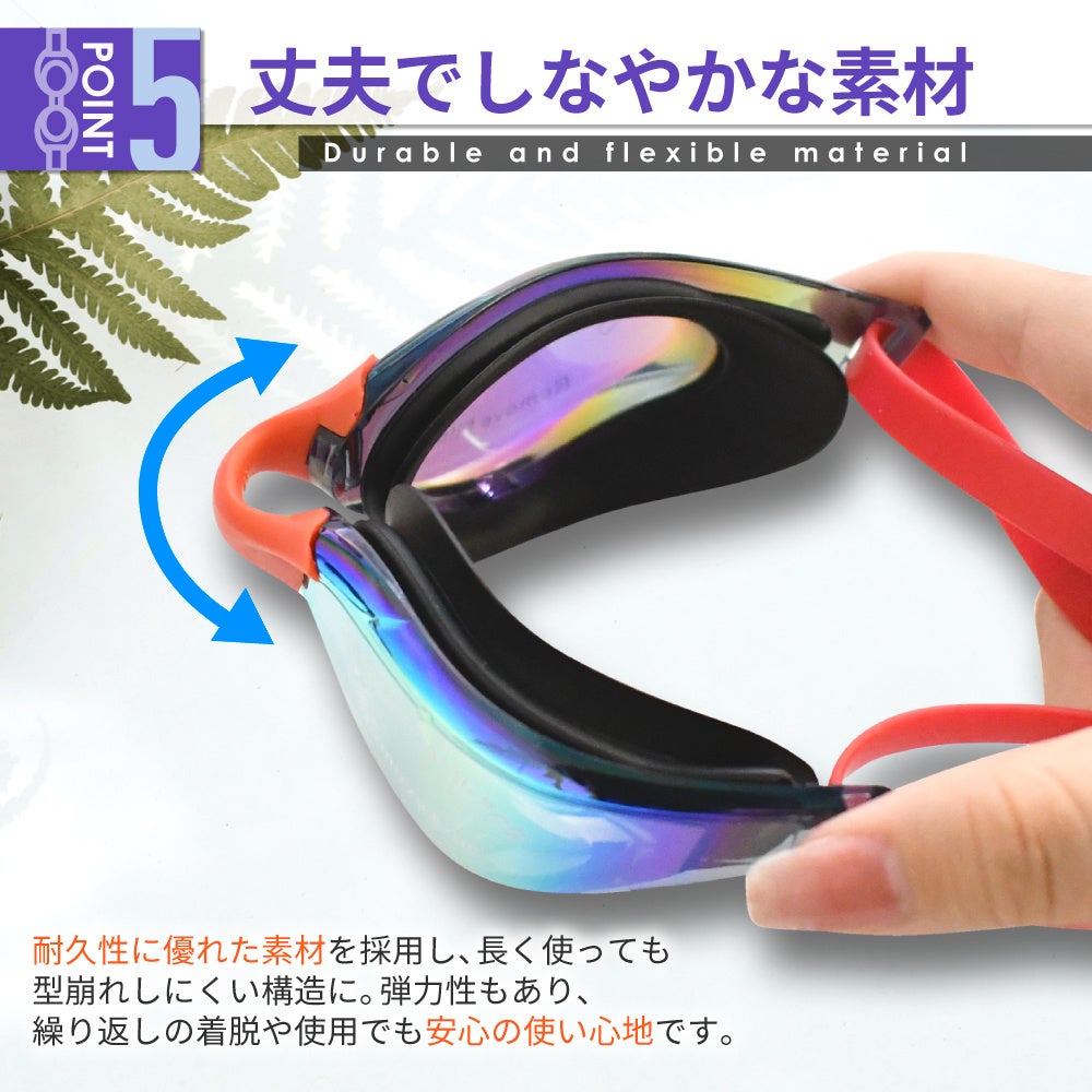 ミラーレンズ仕様で、強い日差しや水面の反射をしっかりカット。水中でも視界が遮られず、集中して泳ぐことが出来ます。