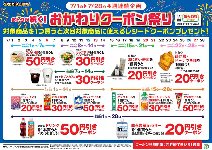 毎日おトクが続く「おかわりクーポン祭り」や「メジャー級グルメ」も新発売!セブン‐イレブン『SPECIAL 夏祭』
