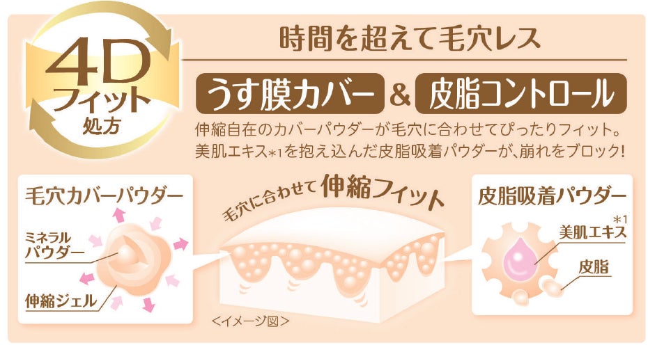 時間を超えて毛穴レスな肌をキープ。うす膜カバー&皮脂コントロールで、どんな毛穴も隠して崩しません。