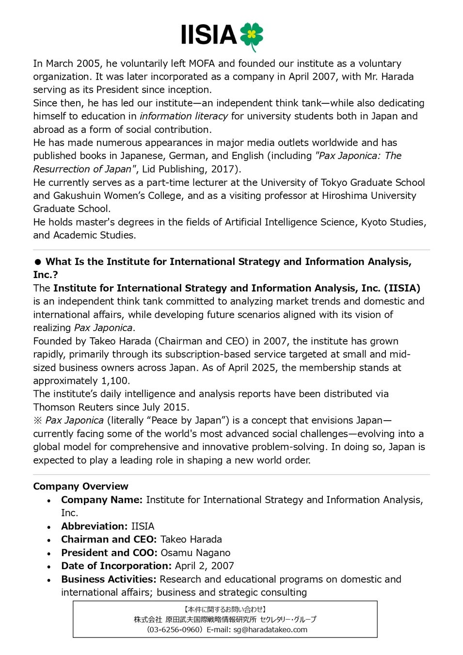 ● What Is the Institute for International Strategy and Information Analysis, Inc.?