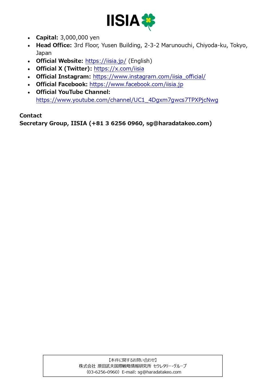 英語表記:Institute for International Strategy and Information Analysis, Inc.(略称:IISIA)