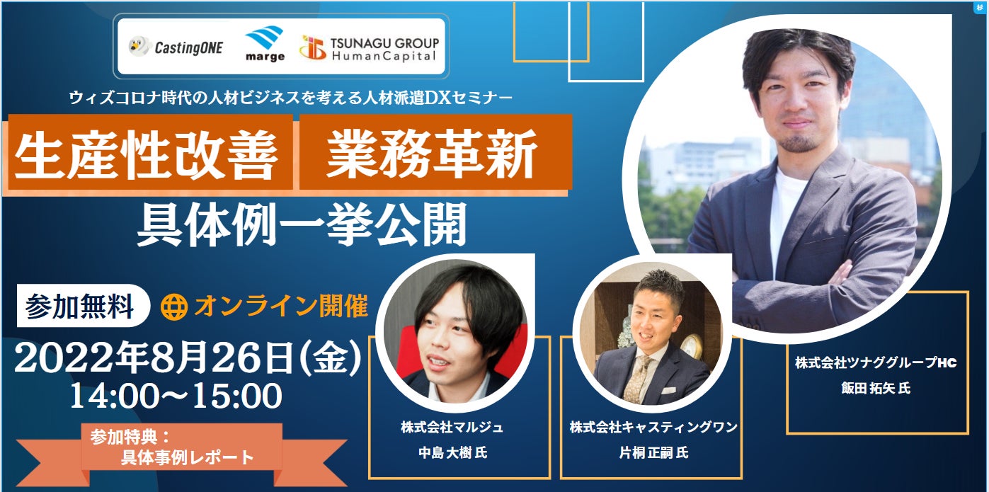 ツナググループHC×株式会社マルジュ×株式会社CastingONE 3社共催派遣会社向け『生産性改善/業務革新の具体事例一挙公開』セミナー開催