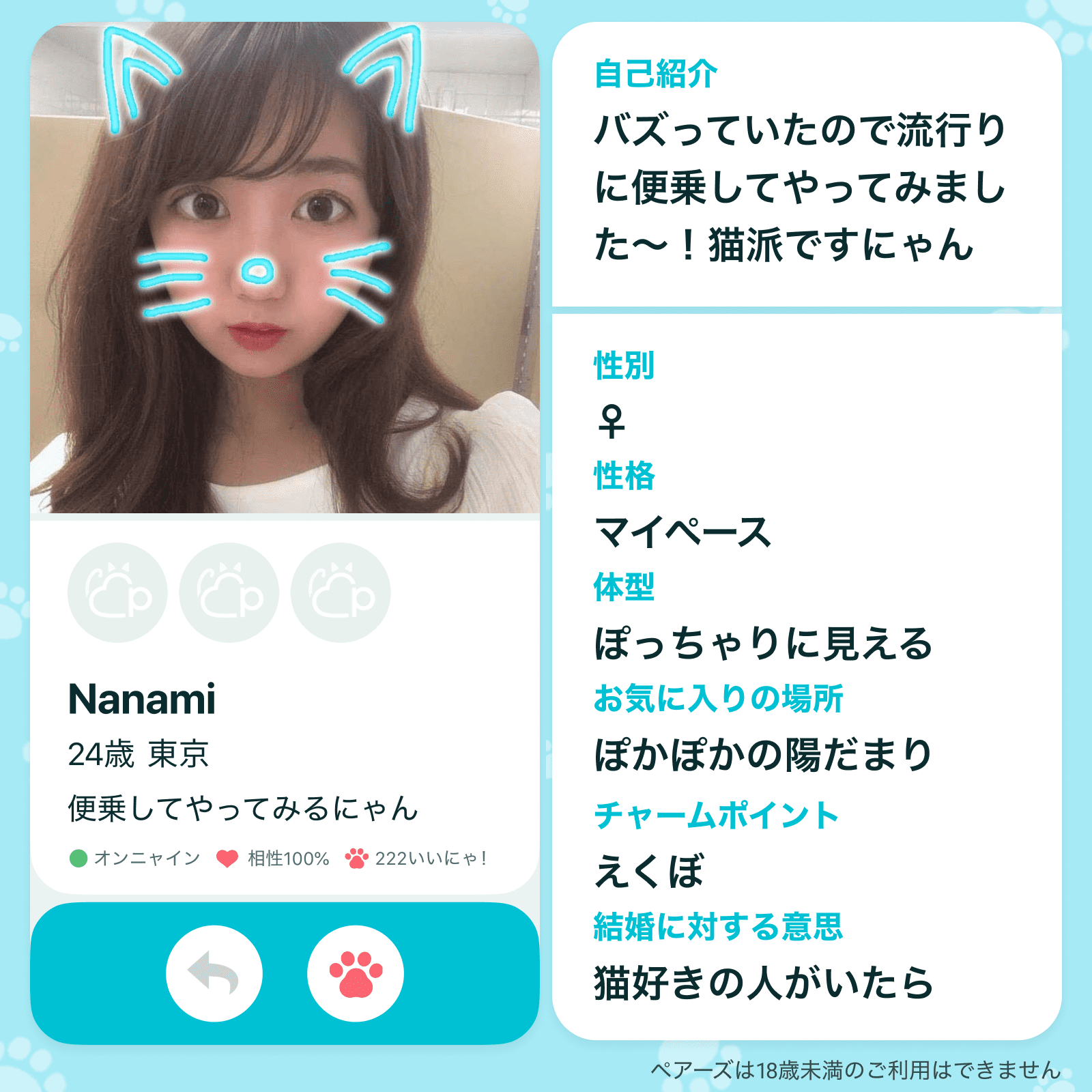 今回ペアーズでは、ご自身が飼われている猫ちゃんや、”推し猫ちゃん”などの画像と情報を用いて、本家「ペアーズ」を模した”ペアーズ風のプロフィール”を作成できる「ペニャーズ プロフィールメーカー」を提供します。