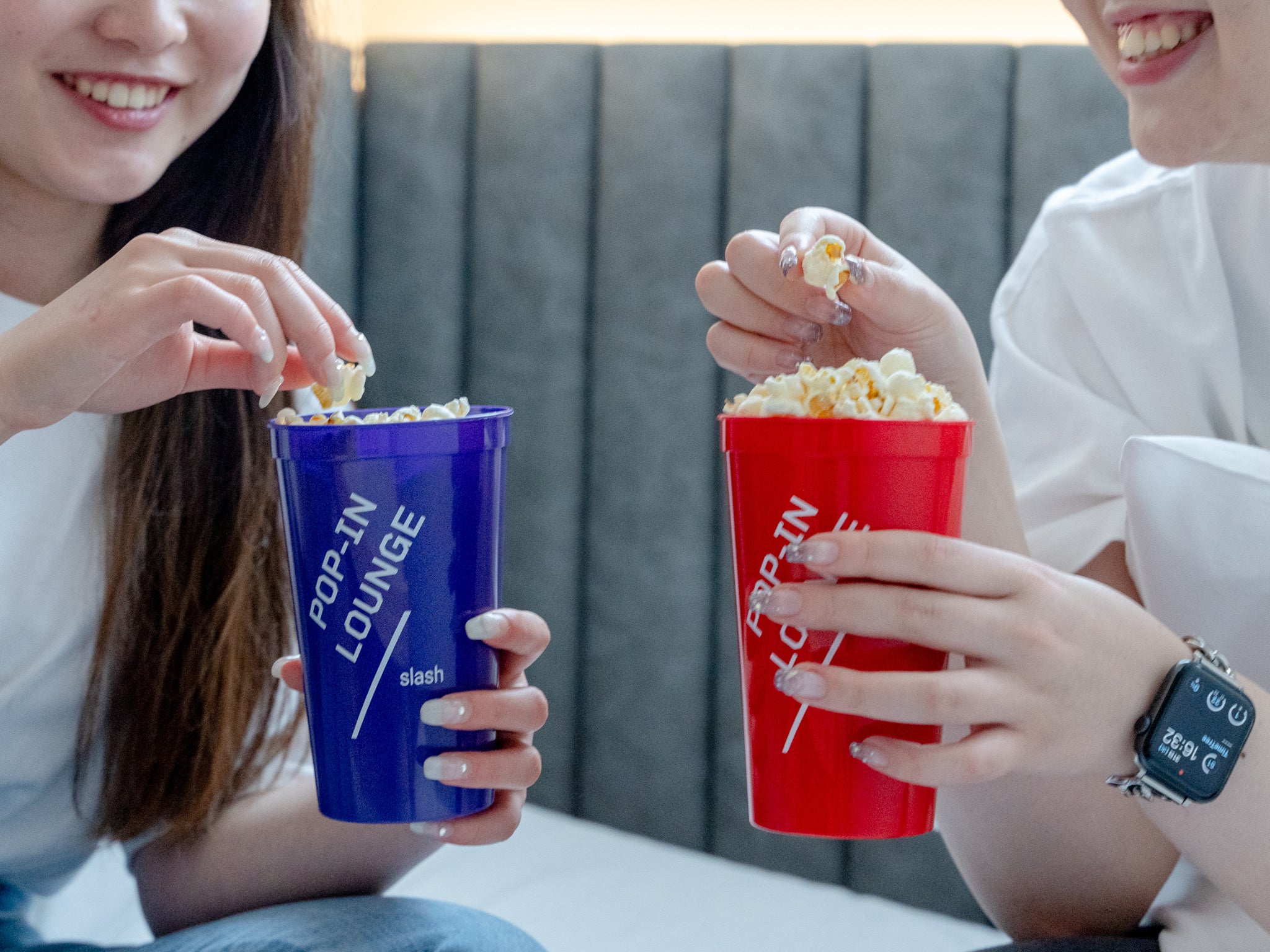 ホテルのエンターテイメント性を高めたいという想いから生まれた業界初となる本サービスは、SNS上でも紹介動画が440万回以上再生されるほど反響が大きかったことから、今後はスタジアムカップの色や、フレーバーのバリエーション展開も計画中です。ポップコーンワゴンで作られるポップコーンの香りや音にワクワクしながら、ホテルならではのスタイリッシュな空間でプライベートシアターを気軽に楽しみませんか。