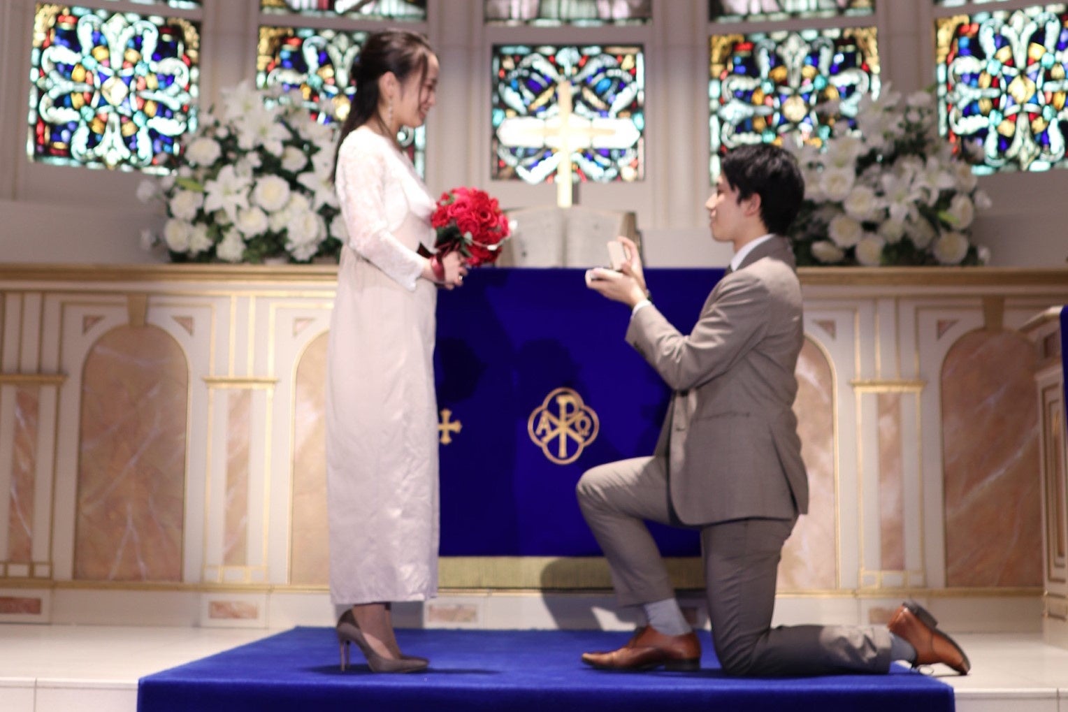 19:45 プロポーズプランナーがお相手様をチャペルへご案内、おふたりだけのチャペルでプロポーズ