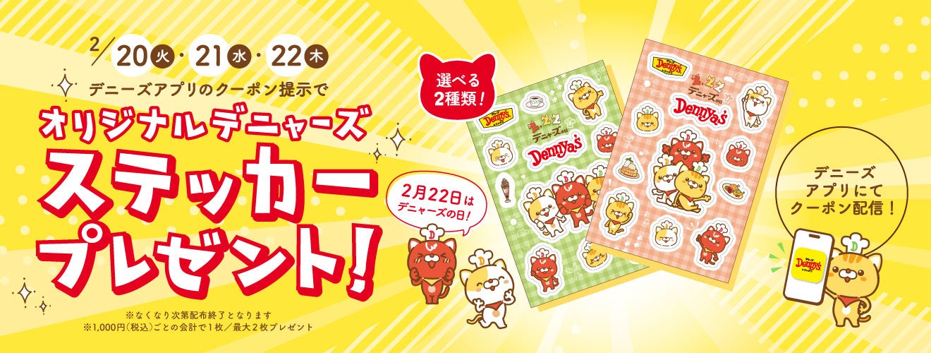 \2月22日はデニャーズの日/ 3日間限定で「オリジナルデニャーズステッカー」プレゼント