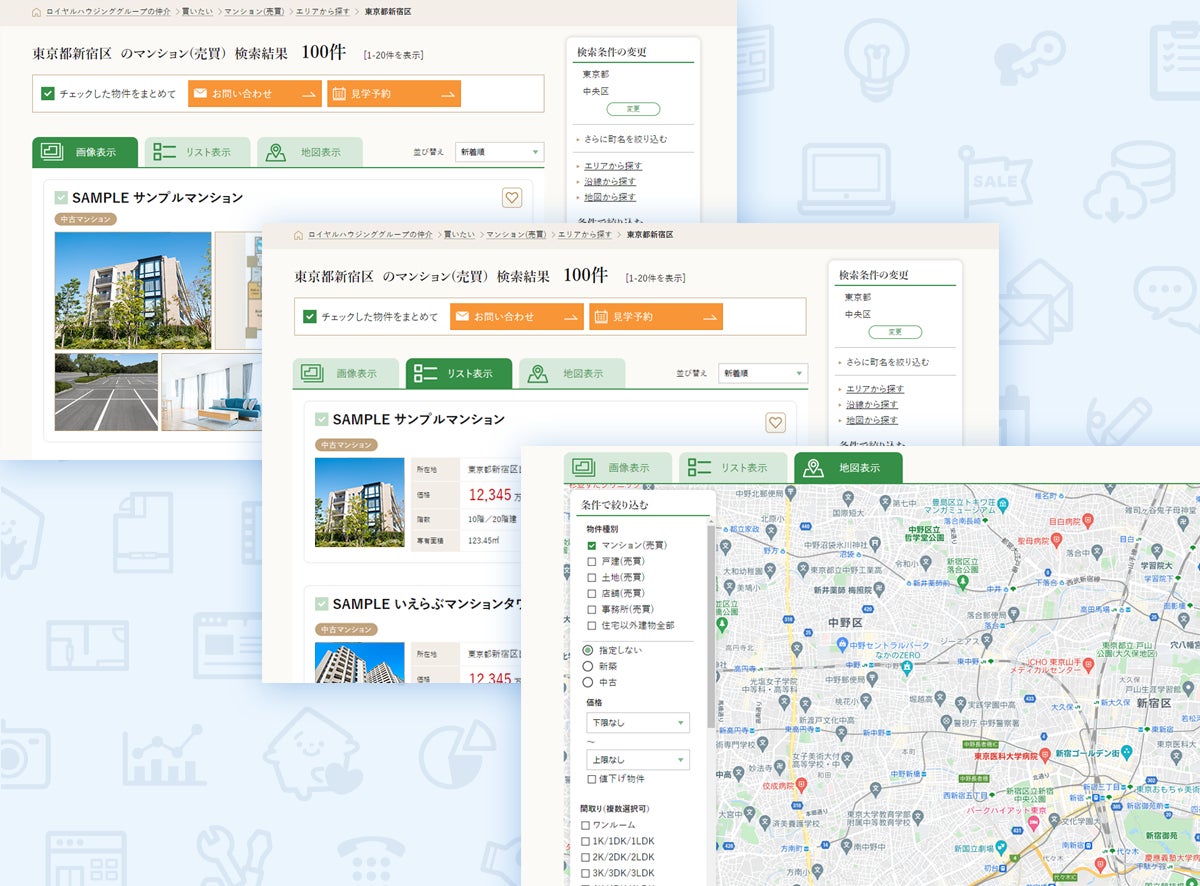 大手不動産会社によるオリジナルシステム・ホームページの受注開発の実績も多く、この度ロイヤルハウジンググループの仲介サイトを公開するに至りました。
