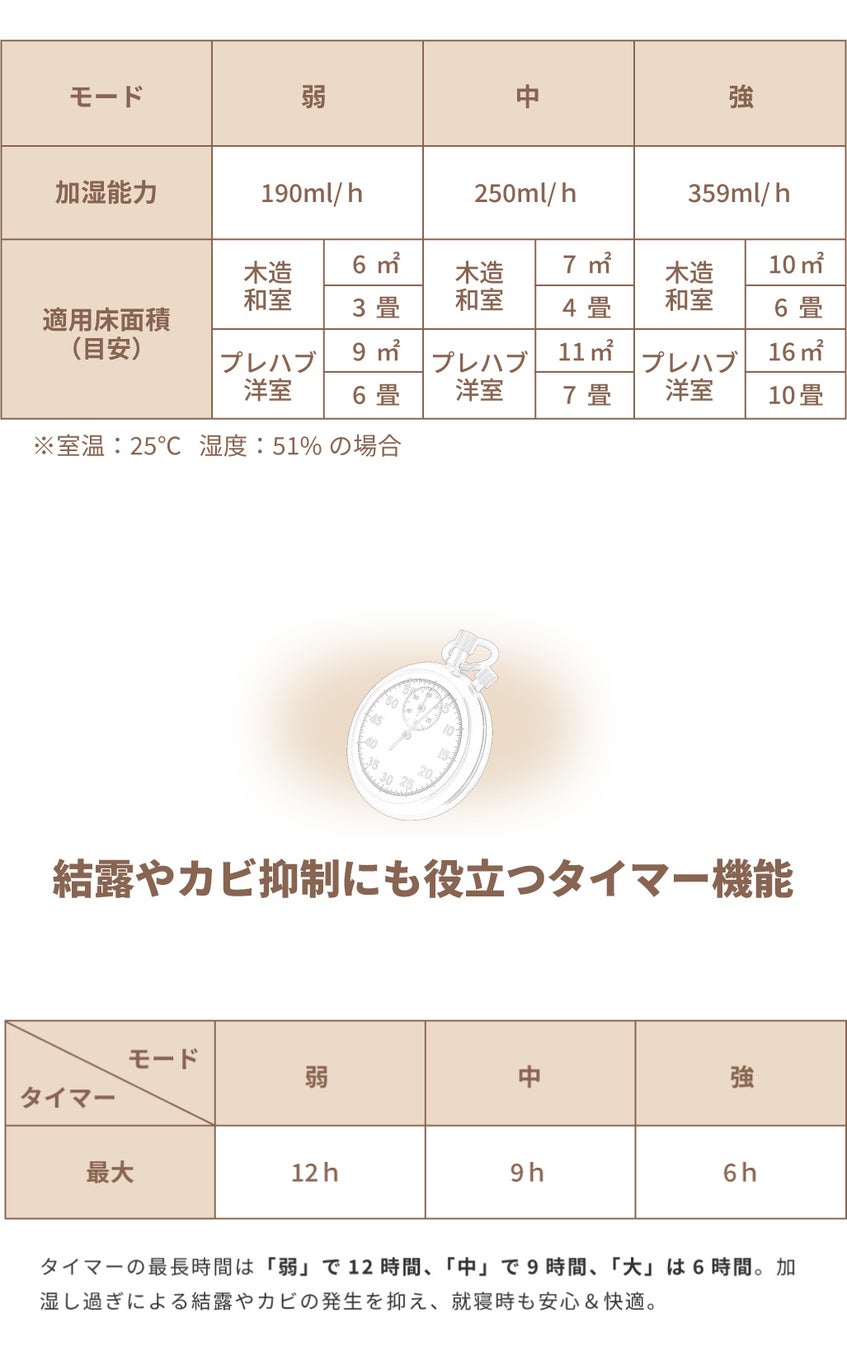 さらに、水を沸騰させてスチームを出すため雑菌の繁殖を予防。うるおいのある空気で雑菌などが飛散しにくい環境に作りに役立ちます。