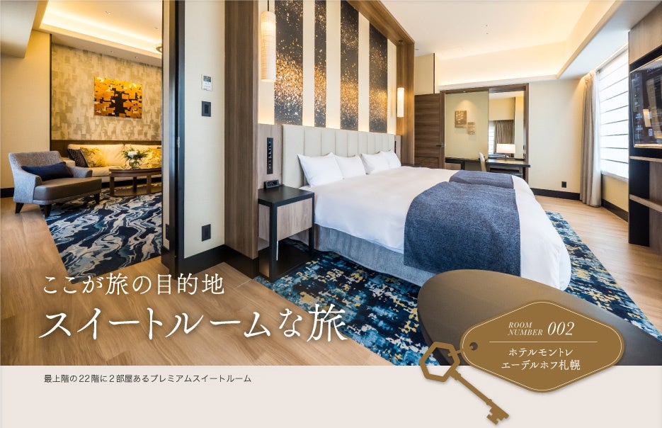 「旅色」で毎号掲載している、スイートルームにスポットを当てた連載。今回は「ホテルモントレエーデルホフ札幌」の最上階にあるプレミアムスイートを特集します。貴族のお屋敷をイメージした重厚で高貴な雰囲気なエントランスや、青空や雲、夜の天の川をモチーフにしたインテリアに加え、北海道営林局跡地ならではの豊かな緑や北海道特有の気候が相まって、まるでヨーロッパの風が吹き抜けるかのような空間を楽しめます。
