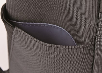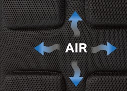 今回発売するバックパックには、ミズノがスポーツバッグに搭載する「SPLIT-STRAP(スプリットストラップ)」をビジネス用バッグとして初めて採用しました。「SPLIT-STRAP」は、ショルダーベルトのクッションを左右2つに分割した独自構造により、重量感が分散されて肩への負担を軽減する*他、この分割したクッションが肩の様々な動きに順応し、フィット感も向上します。また、左右のクッション間はメッシュ素材を使用しており通気性を高めています。