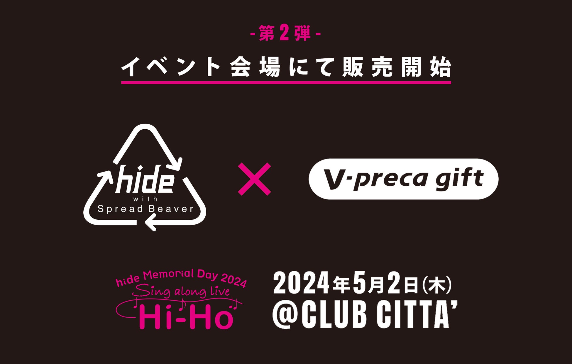 通常Vプリカオンラインショップのみでの販売となりますが、2024年5月2日(木)、川崎CLUB CITTA’で開催されるhide Memorial Day 2024 「Sing along Live "Hi-Ho!"」会場にて先行販売を開始いたします。