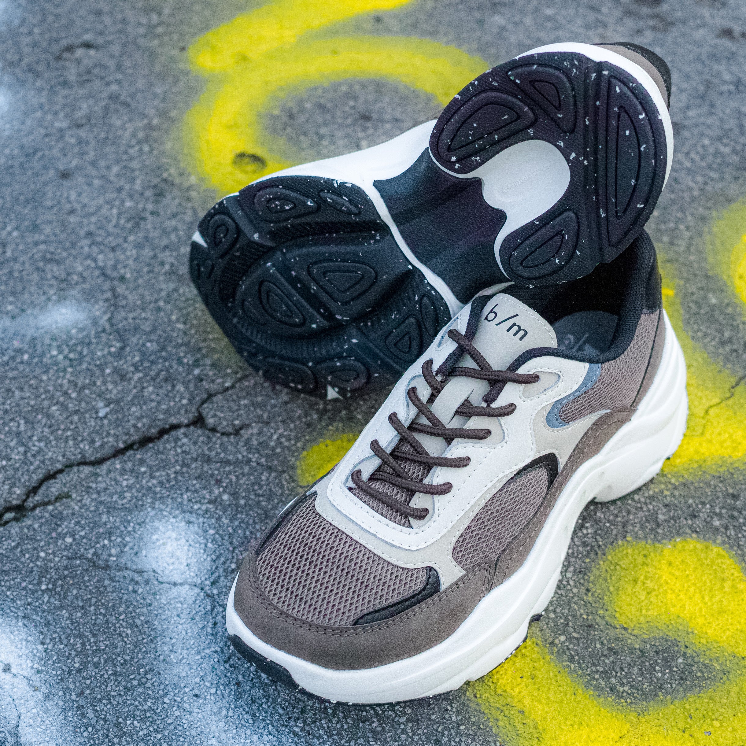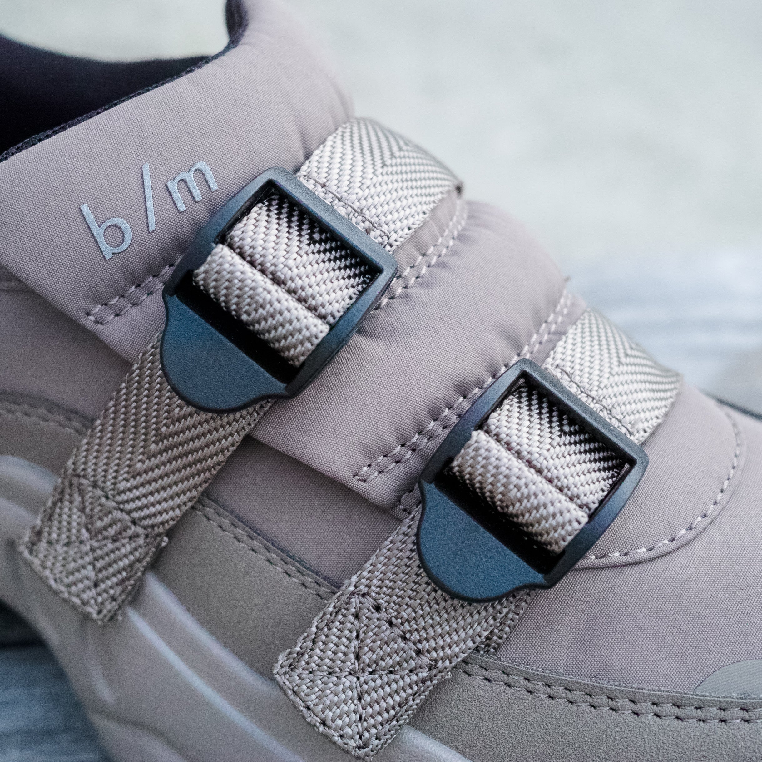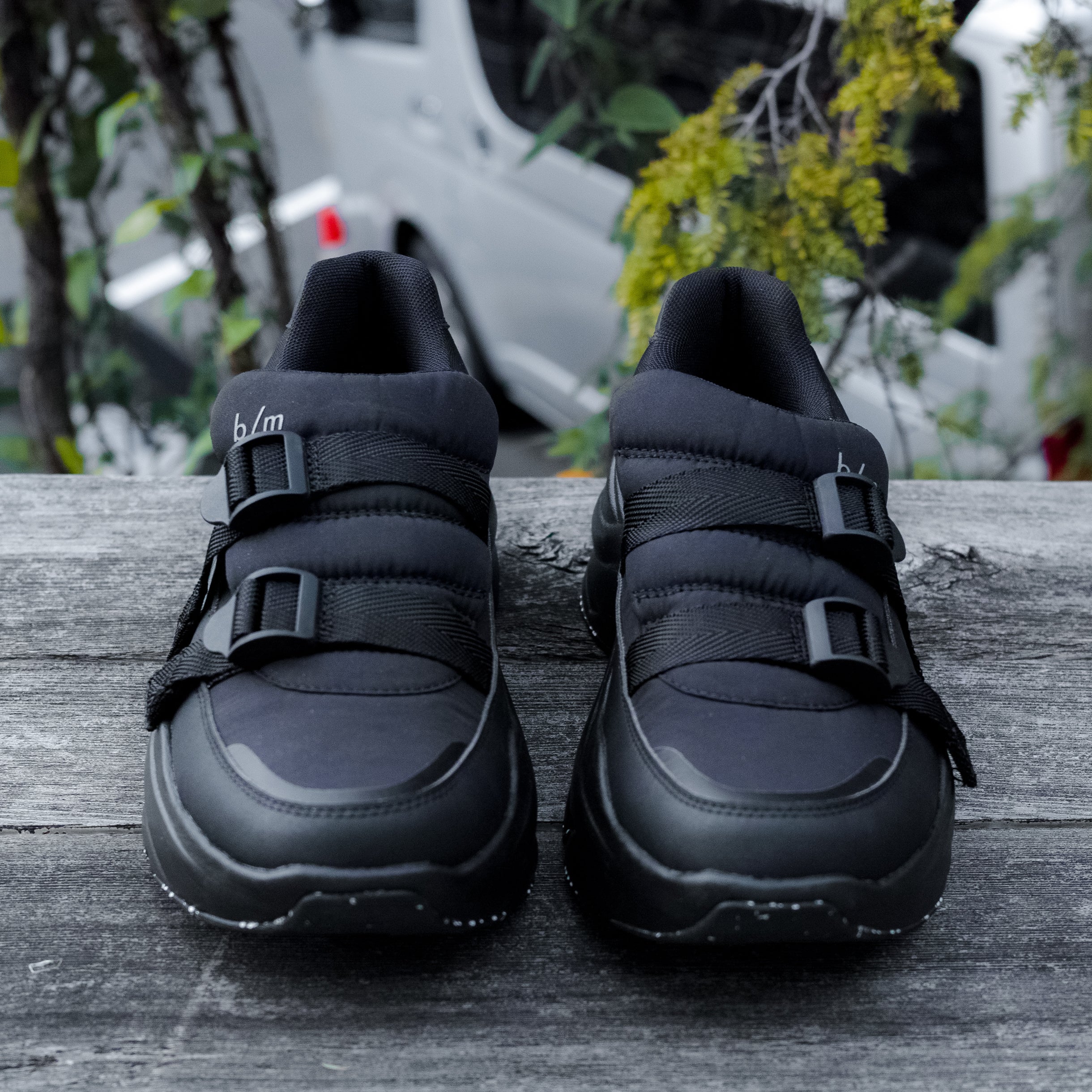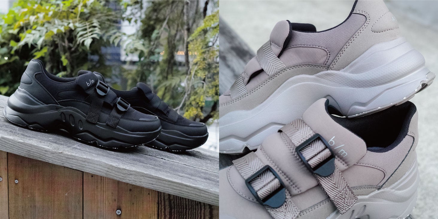 ブランド名である「b/m(ビーエム)」は「borderless(ボーダーレス)」「moonstar(ムーンスター)」が由来となっています。「そのときの自分の居場所により良い快適さと遊び心を。」をテーマに、性別や年齢、暮らしや働き方に捉われず、日々変わりゆく常識と多様性の広がる社会に適応したプロダクトを提案するブランドです。アッパーやソールには再利用された素材を採用し、環境に配慮した設計も特徴です。