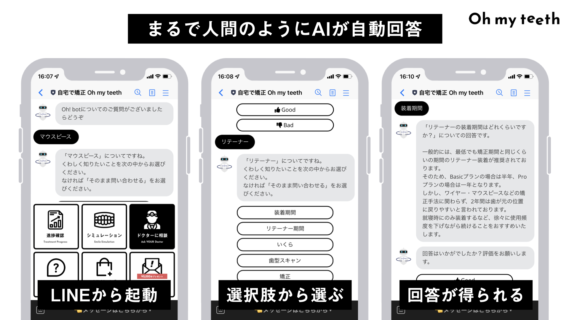 マウスピース矯正D2C「Oh my teeth」さらなるUX向上を目指しワークスアプリケーションズ・グループと連携 -AI対話ツール「HUE チャットボット」の医療分野における有効性検証開始-