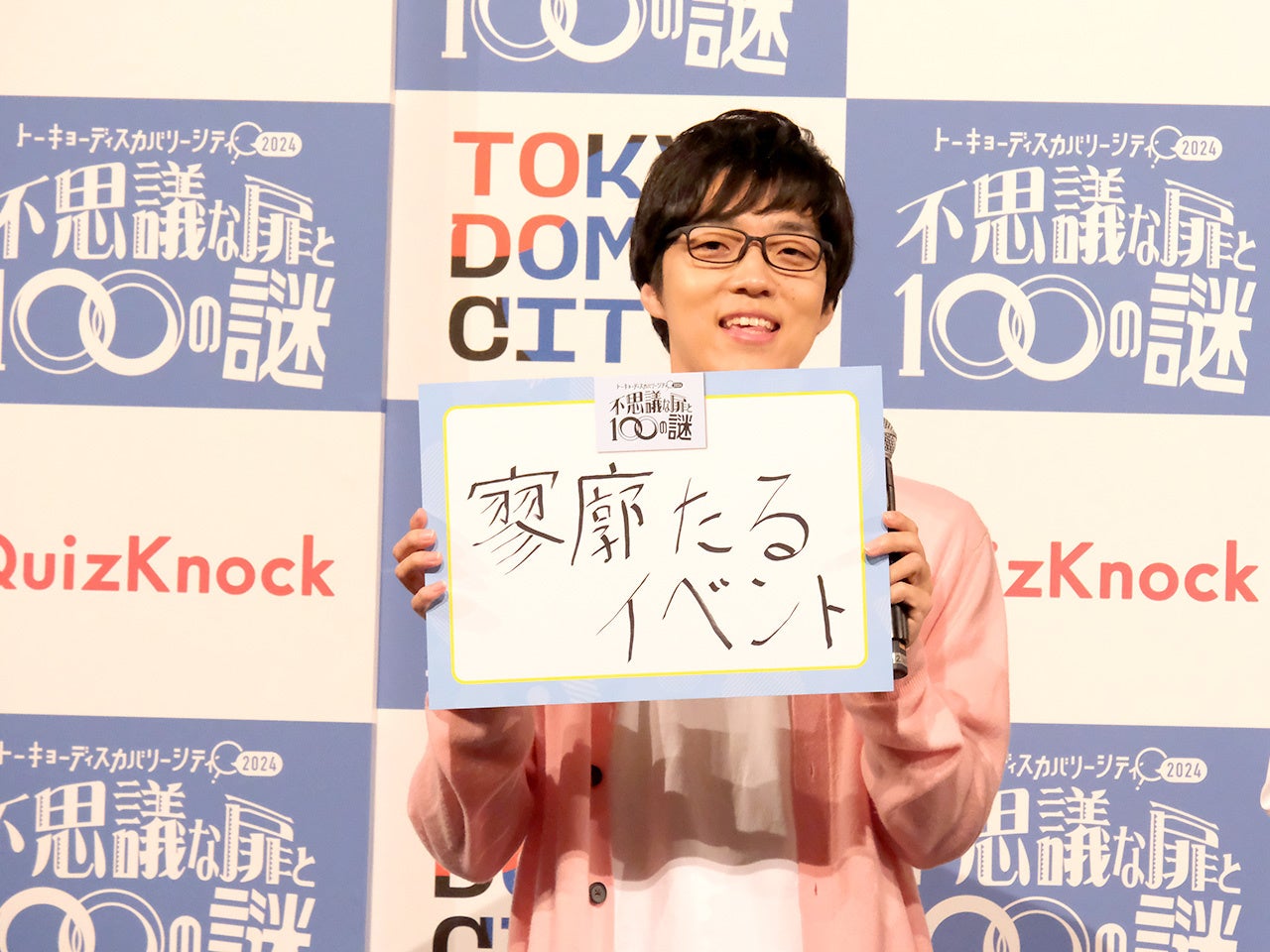 司会から「QuizKnock らしい、インテリジェンスがある言葉で」というオーダーを受けた5名は、しばらく悩んだ後に『トーキョーディスカバリーシティ!2024 不思議な扉と100の謎』の魅力を伝える「ちょっと難解な」言葉を会場に掲げました。