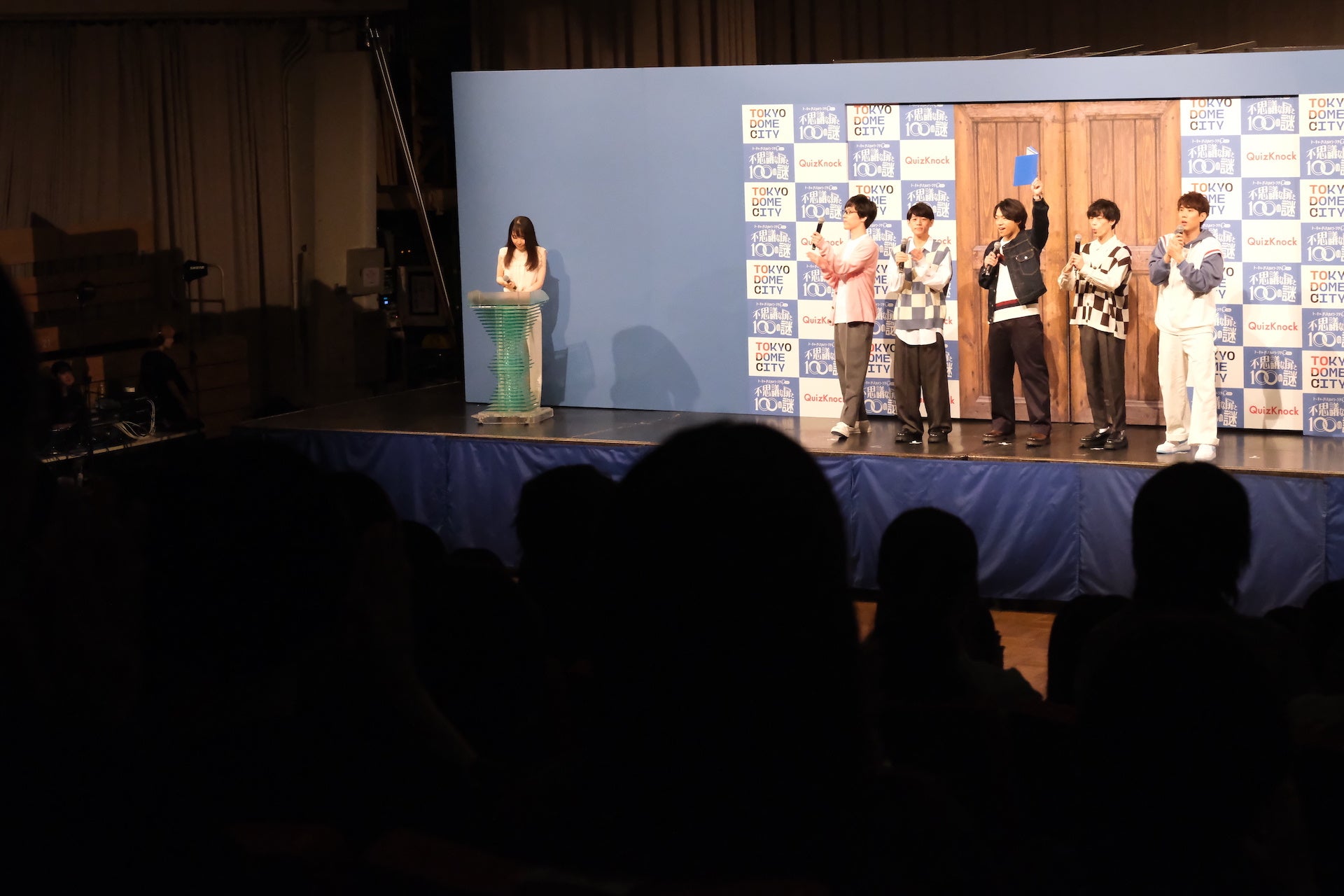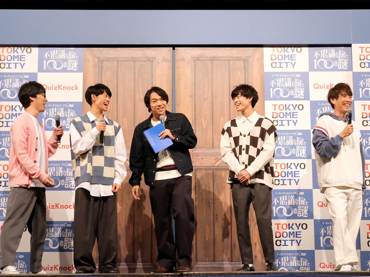 この日に登場したのは 伊沢拓司、ふくらP、須貝駿貴、東問、東言 の5名。記者発表会の会場となった「後楽園ホール」のステージには大きな「扉」がつくられ、メンバーはそこからステージ上へ。スタートを楽しみにしてくださっていたファンの皆さまからは、登場のたびに声援や拍手をいただきました。