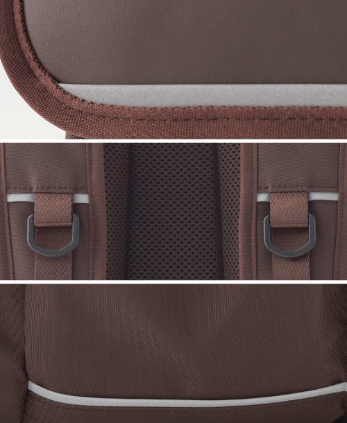 両肩ベルトに防犯ブザーなどの取り付けができるDカン付き。