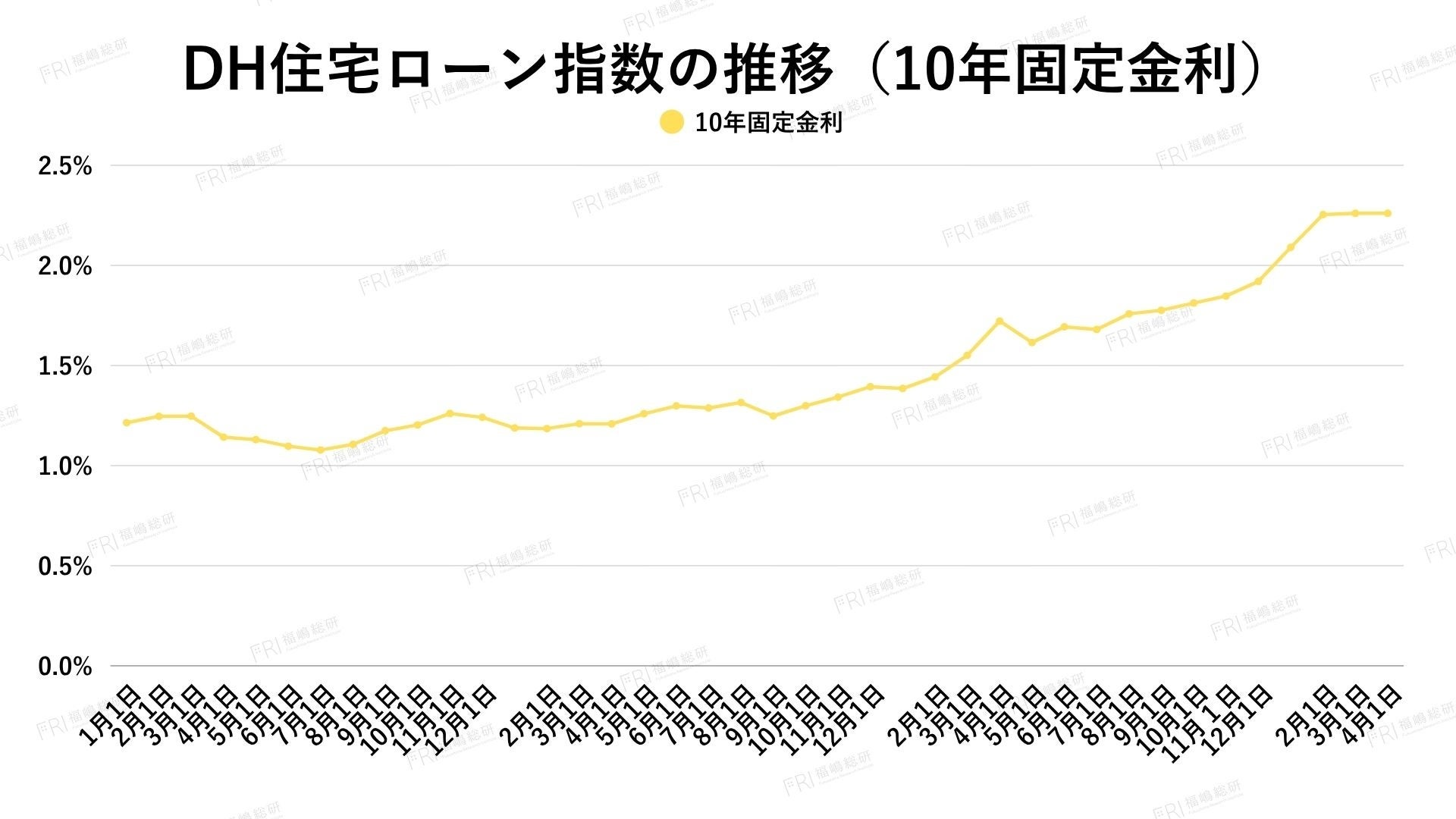 2026年3月の10年固定金利は横ばい圏で推移しましたが、DH住宅ローン指数は2.260%と前年の1.551%から大きく上昇しており、中長期的には明確な上昇トレンドにあります。足元では一時的に動きが鈍化し、様子見の局面となっています。