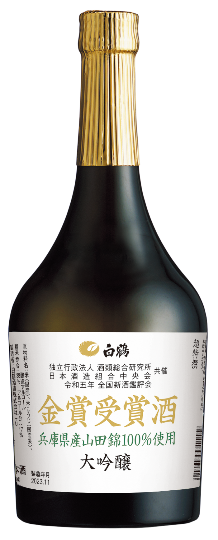 共催)において金賞を受賞した日本酒を、「白鶴 金賞受賞酒 山田錦 720ml」として、2023年12月2日(土)から540本限定・直営店限定で発売します。オンラインショップでは11月16日(木)から先行予約受付を開始します。
