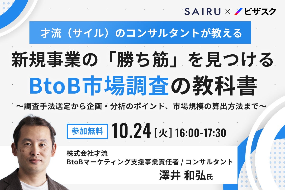 【10/24(火)16時】才流のコンサルタントが教える 「新規事業の"勝ち筋"を見つける BtoB市場調査の教科書」 無料オンラインセミナーを開催