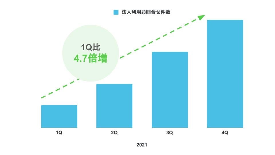 ▼法人利用のお問合せは1Qから4Qにかけて約4.7倍増