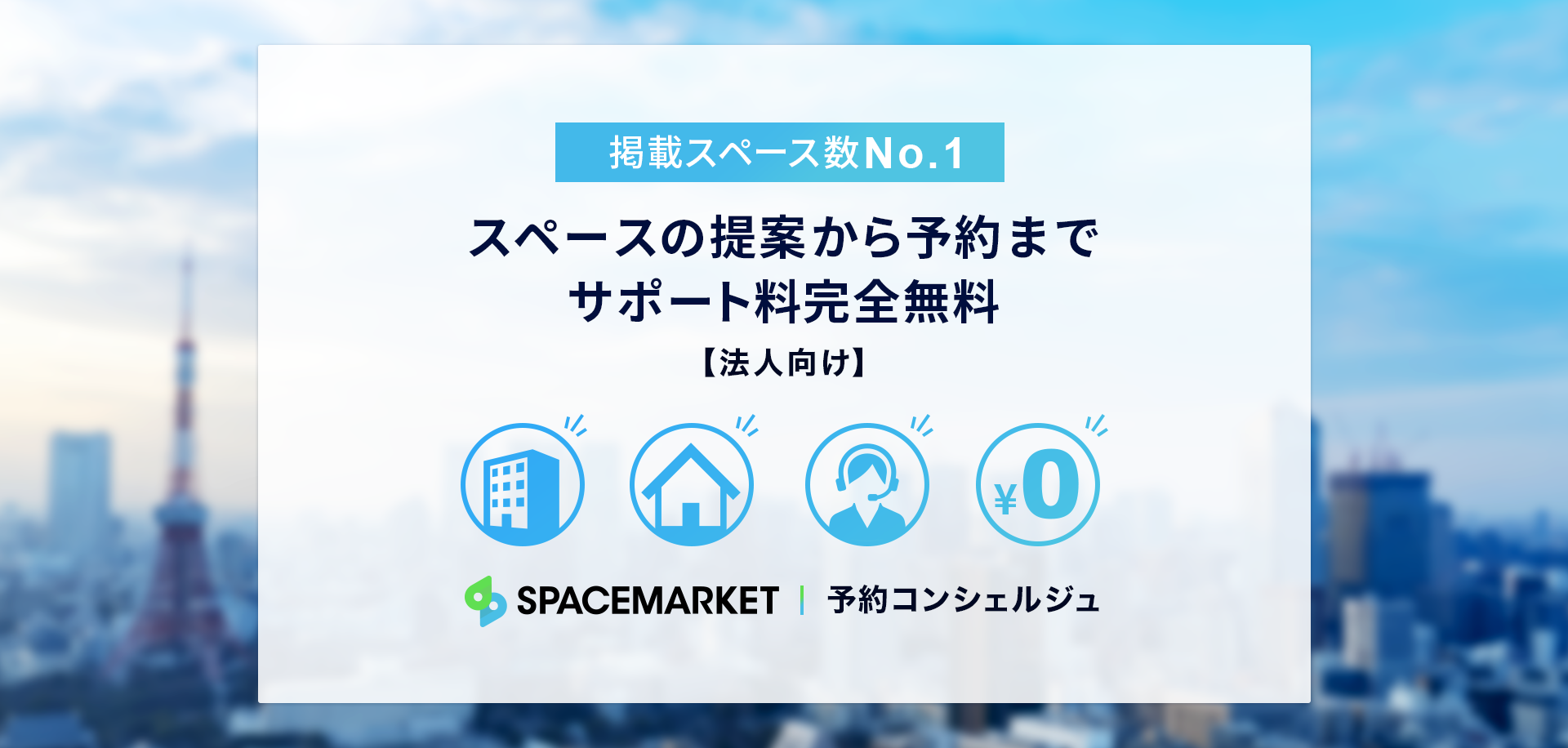 あらゆるスペースを貸し借りできるプラットフォーム「スペースマーケット」を運営する株式会社スペースマーケット(本社:東京都渋谷区、代表取締役社長:重松大輔、以下、スペースマーケット)は、法人向けサービス「予約コンシェルジュ」の提供を開始したことをお知らせいたします。