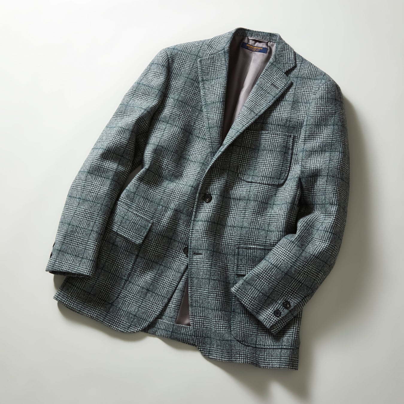 英国フランネルの代名詞とも言われるFOX BROTHERSの250周年記念ファブリックの一つで、伝統的なグレンチェックにブリティッシュレーシンググリーンのオーバーペイン柄が入ったフランネルを使用。自社工場で縫製することにより、見返し部分に“OWN MAKE”のネームの使用が許可された貴重なアイテム。段返り3釦、フックベント仕様、3パッチ&フラップポケット